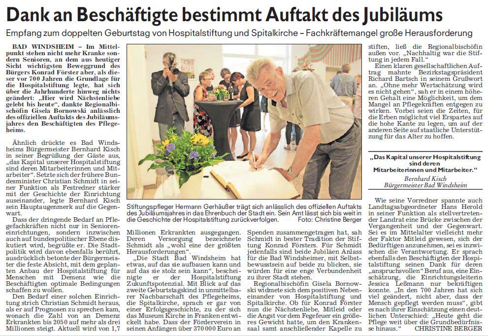 Empfang zum doppelten Geburtstag von Hospitalstiftung und Spitalkirche - Fachkräftemangel große Herausforderung.