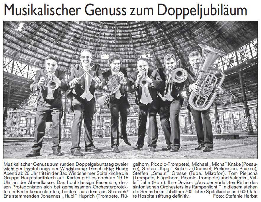 Musikalischer  Abend mit der Gruppe Hauptstadtblech  in der Bad Windsheimer Spitalkirche.